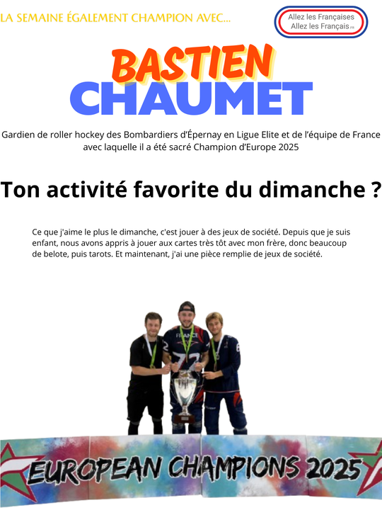 La semaine "Egalement champion" avec… Bastien Chaumet, Champion d’Europe 2025 de roller hockey