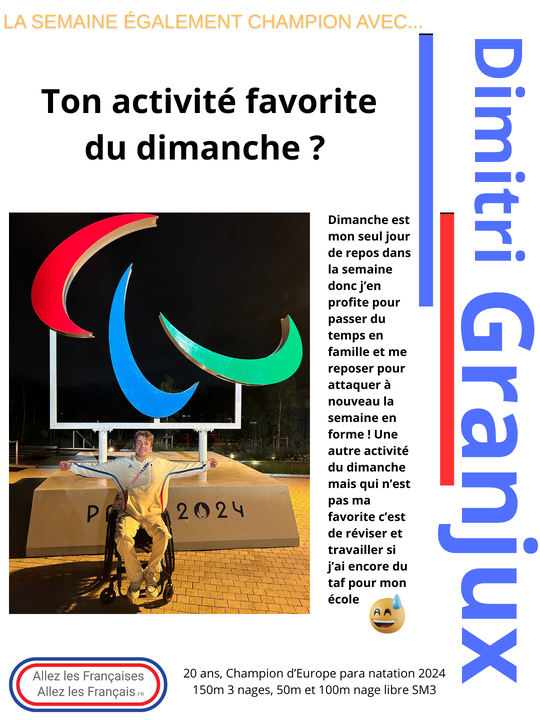 La semaine "Egalement champion" avec… Dimitri Granjux, para natation, Champion d'Europe 2024 150m 3 nages, 50m et 100m nage libre SM3