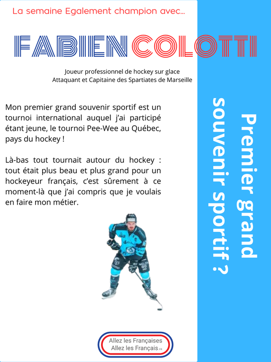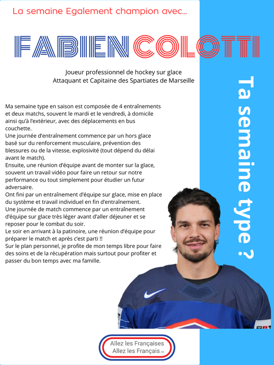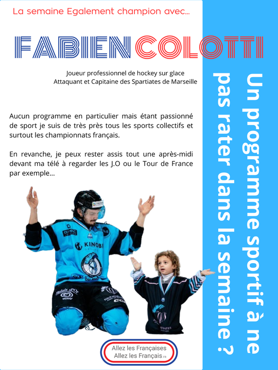 La semaine "Egalement champion" avec… Fabien Colotti, joueur professionnel de hockey sur glace, l’attaquant et capitaine des Spartiates de Marseille