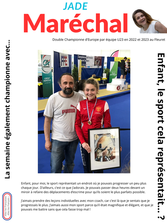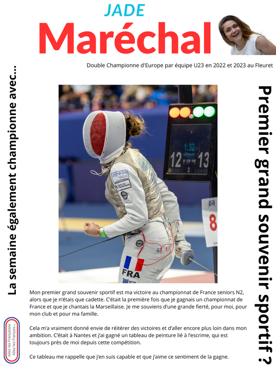 La semaine "Egalement championne" avec… Jade Maréchal, Championne d'Europe par équipe U23 en 2022 et 2023 au Fleuret