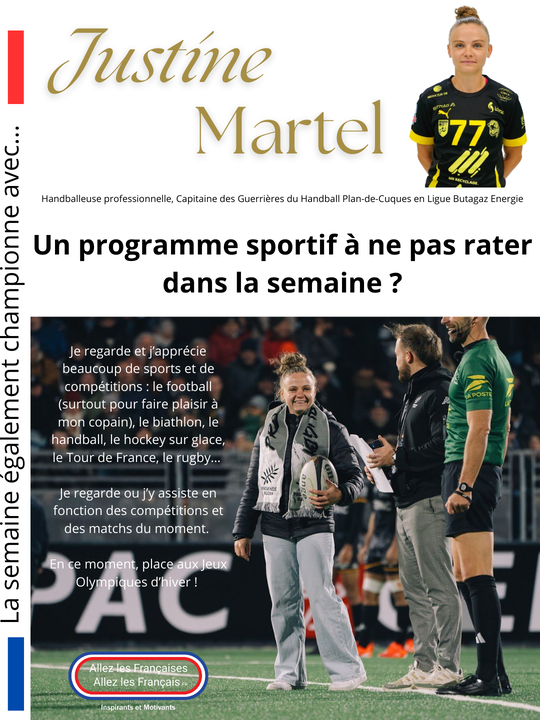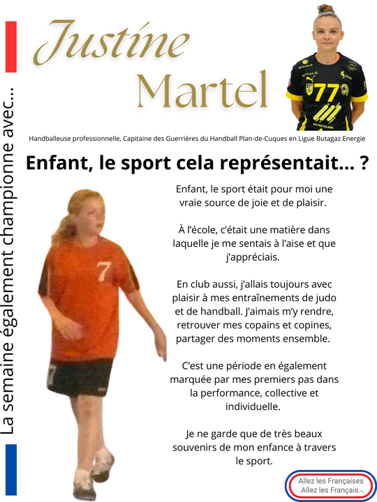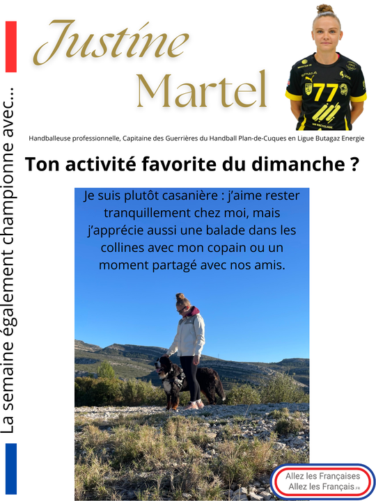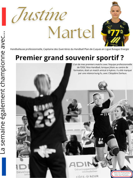 La semaine "Egalement championne" avec… Justine Martel, handballeuse professionnelle, Capitaine des Guerrières du Handball Plan-de-Cuques