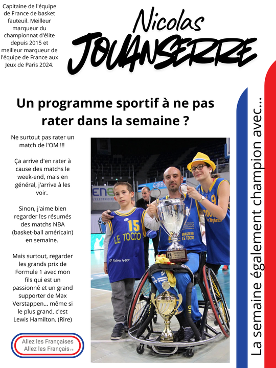 La semaine "Egalement champion" avec… Nicolas Jouanserre, capitaine de l'équipe de France de basket fauteuil