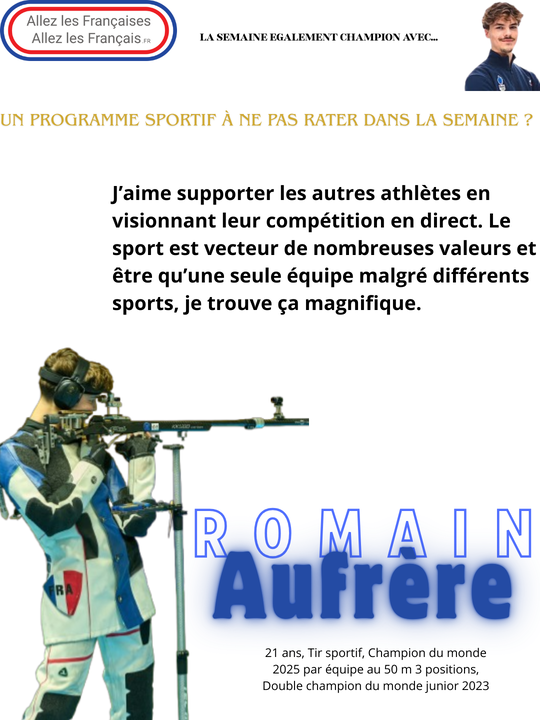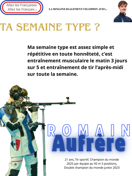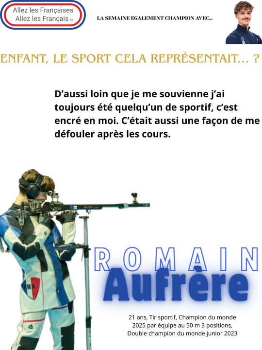 La semaine "Egalement champion" avec… Romain Aufrère, champion du monde junior de tir à la carabine à 10 mètres et carabine à 50 mètres à 3 positions en 2023