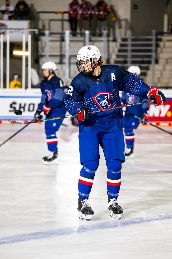 Meilleure joueuse tricolore en 2023, meilleure attaquante en 2025, Estelle fait partie des "anciennes" du hockey-sur-glace français. Voilà treize ans qu'elle porte la tunique bleu-blanc-rouge, fidèle au n°12 sur son maillot, en club ou sélection. A 18 ans, celle qui est surnommée "Puce" par Clara Rozier, coéquipière en Bleue et coloc' de chambre à l'internat, traverse l'Atlantique pour jouer aux Etats-Unis. Déjà élue meilleure joueuse du Championnat suisse en 2023-2024, l'internationale française a une nouvelle fois été récompensée lors des Swiss Ice Hockey Awards.